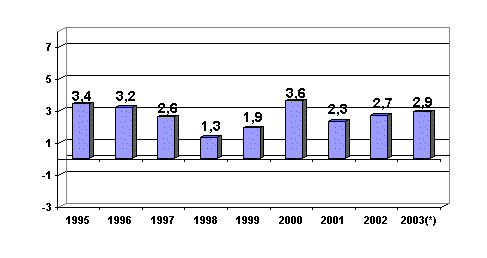 Urte arteko hazkunde-tasa (2003ko otsaila, 2002ko otsailarekin alderatuta) %2,9koa izan da.