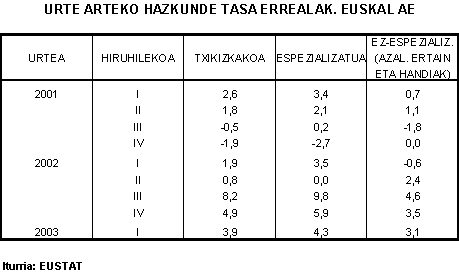 TXIKIZKAKO MERKATARITZAREN INDIZEA (BMIt) 2003ko lehenengo hiruhilekoa