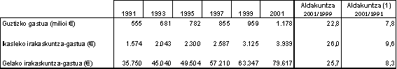 Ia gastu hori osoa, % 91,8, jarduera arruntetarako da; eta gainerako % 8,2ak, inbertsioetarako. Gastu arrunta, 1.081 milioi euro, irakaskuntzara bideratu zen % 95 (irakaskuntzako atal nagusia —% 89,3— langileria-gastuak izanik); jarduera osagarrietara, % 0,4; eta zerbitzu osagarrietara (jantokia eta eskola-garraioa, batik bat), % 4,8.