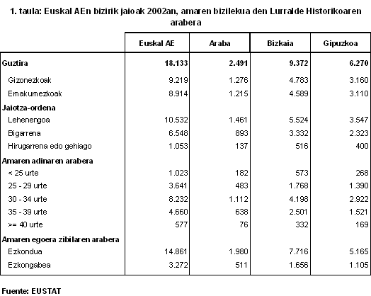 2002. urtean, guraso ezkongabe zituztela jaioak 3.272 izan ziren. Bestela esanda, halakoak izan ziren jaiotzen % 18, hots, 2001ean (%16,3) baino gehiago. Araba izan zen Euskal AE osoak baino balio handiagoak izan zituen lurralde bakarra, eta hazkunderik handiena izan zuena: 2001ean % 16,4 ziren, eta 2002an % 20,5.
