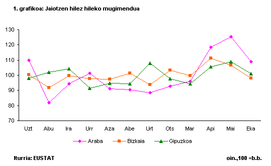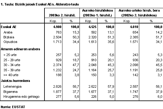 Jaiotzak amaren adinaren arabera banatzen baditugu, ikusiko dugu 3034 urteko amen taldea oraindik ere nagusi dela argi eta garbi, haien artean gertatu baitira erditzeen ia erdiak. Talde horren ondotik, hurrengo goragoko taldea dago, hau da, 3539 urte artekoa (%24,7); 2529ko taldea beherago geratu da, erditzeen %18,7 ekarri baititu. Muturreko adinak dituzten taldeetan, 25 urtez behera amatzen direnak %5,1 dira, eta 40 urtez gorakoen taldeak, berriz, jaiotzen %3,7 besterik ez du ekarri.