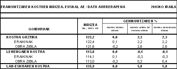 ERAIKUNTZAREN KOSTUEN INDIZEA (EKI) 2003KO IRAILA