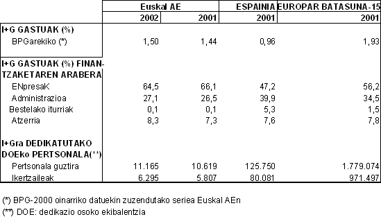 Egiaztatzen da erlazio positiboa dagoela biztanleko BPGaren eta I+Gra bideratutako BPGaren ehunekoaren artean. Herrialde aberatsenek egiten dute I+Gko inbertsiorik handiena, hau da, euren BPGaren %2,5 gainditzen dutenak: Suediak, Japoniak, Finlandiak eta AEBek. Bitarteko ahalegina, hots, BPGaren %1,5en eta %2,5en artekoa egiten dutenen artean, Alemania, Frantzia, Danimarka, Erresuma Batua, Norvegia, Austria eta Kanada daude. Inbertsio baxuak, azkenik, Irlandan (%1,17), Italian (%1,07), Espainian (%0,96), Hungarian (%0,95), Portugalen (%0,78) eta Polonian (%0,67)gertatzen dira.