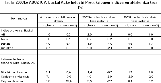 INDUSTRI PRODUKZIOAREN INDIZEA (IPI) 2003ko ABUZTUA