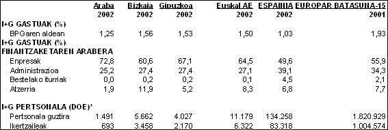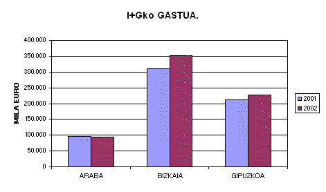 Egikaritze-sektoreari dagokionez, lurralde historiko bakoitzak berezitasunak agertzen ditu. Araban, oraindik ere oso garrantzitsua da administrazio publikoaren gastua, administrazioaren meneko erakunde asko bertan kontzentratzen direlako eta aurten I+Gra bideratutako baliabideak %22 gehitu direlako. Bestalde, unibertsitatearen pisuak Euskal AEko gainerako herrialdeetan duenaren azpitik jarraitzen du eta enpresen sektoreari dagokionez, berriz, berau izan da gastuaren jaitsiera globalaren eragile, 2.002an %8ko atzerakada izan baitu.