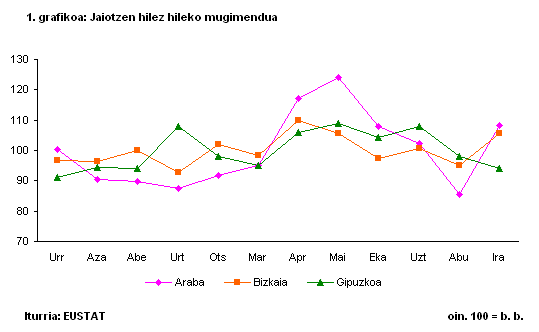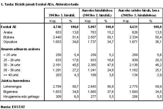Jaiotzak amaren adinaren arabera banatzen baditugu, ikusiko dugu 30-34 urteko amen taldea oraindik ere nagusi dela argi eta garbi, haien artean gertatu baitira erditzeen ia erdiak. Talde horren ondotik, hurrengo goragoko taldea dago, hau da, 35-39 urte artekoa (%27,2); 25-29ko taldea beherago geratu da, erditzeen %17,6 ekarri baititu. Muturreko adinak dituzten taldeetan, 25 urtez behera amatzen direnak %5,4 dira, eta 40 urtez gorakoen taldeak, berriz, jaiotzen %4,3 besterik ez du ekarri.