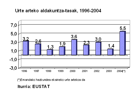 Azken hamabi hilabeteetan (2004ko ekaina, 2003ko ekainarekin alderatuta) eraikuntzaren kostuak %5,5 gehitu ziren.