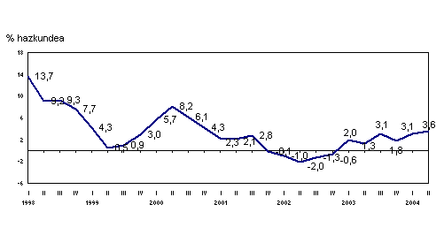 2004ko lehenengo sei hilabeteko bilakaerak %4,3ko hazkundea izan zuen, 2003ko aldi beraren aldean.