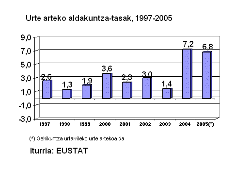 Urtarrilean prezio hazkunderik handienak kontsumitutako lehengaiek hauek izan zituzten: petroliotik eratorriak (%4,8), ateratze-agregatuak (%2,7), zementu artifiziala (%2,6), burdina eta altzairua (%2,3) eta lur erreak (%1,8) lehengaiek. Aitzitik, hileko prezioetan murrizketak izan zituzten bulego-materiala (%-1,1), metalezko hoditeria (%-1,0), beira (%-0,5), egiturak eta galdaragintza (%-0,4) eta karea, igeltsua eta eskaiola (%-0,1) lehengaiek.