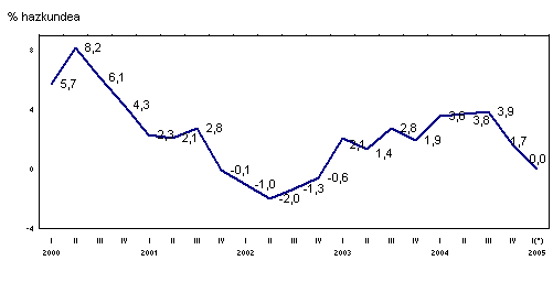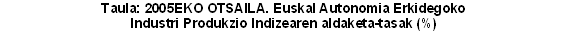 Sektoreen arabera, eta industri sektore nagusienak sailkatu ostean, 2005eko otsaileko indizearen bilakaera hazi egin da Energian (%3,4) eta Ekipamenduko ondasunetan (%0,9), 2004ko otsailarekin erkatuta. Kontsumo-ondasunek %4,2 egin dute behera. Azken hauetan bi atal bereiz daitezke: kontsumo-ondasun iraunkorrak, urte arteko %4,4ko hazkundea dutenak, eta kontsumo-ondasun ez iraunkorrak, %8,1eko atzerakada dutenak. Bestalde, Tarteko ondasunek urte arteko %-0,4ko tasa negatiboak dituzte.