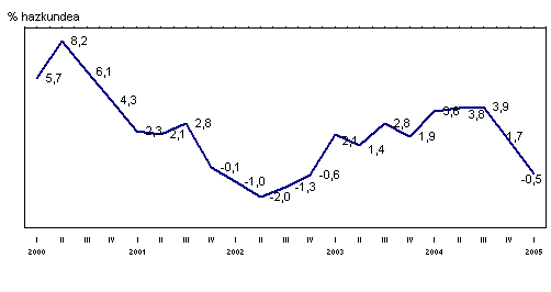 2005eko lehenengo hiruhilekoan izandako bilakaerak %0,5eko atzerakada izan zuen, aurreko urteko aldi berdinarekin alderatuta