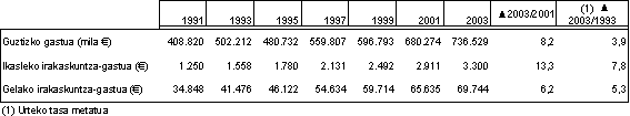 Gastuaren %93,9 gastu arruntari dagokio eta gainerako %6,1 kapital gastuari. Gastu arrunta 692 milioi eurokoa izan zen; bada, horren %91 irakaskuntzarako erabili zen, %1,3 jarduera osagarrietarako eta gainerakoa, %7,7, zerbitzu osagarrietarako (jantokia eta garraioa batez ere).