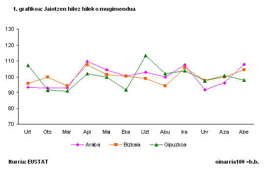 Jaiotzak amaren adinaren arabera banatuz gero, ikusiko dugu 3034 urteko amen taldea dela nagusi oraindik ere, haien artean izan baitziren erditzeen % 44,5. Talde horren ondotik, hurrengo goragoko taldea kokatu zen, hau da, 3539 urte artekoa (% 27); 2529ko taldea beherago geratu zen, erditzeen % 18,2 ekarri baitzituen; eta 20-24ko taldeak % 4,5 besterik ez zuen ekarri.