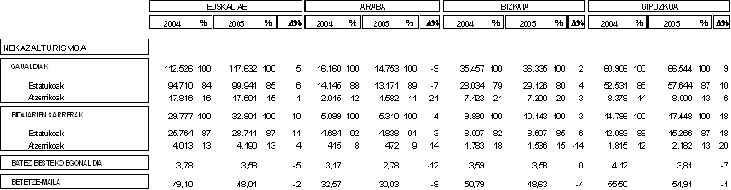 Euskal AEko nekazalturismoko establezimenduetan, 2005eko ekainean, uztailean eta abuztuan 32.901 bidaiari-sarrera erregistratu ziren, hau da, iazko aldi berean baino %10 gehiago: %18 gehitu ziren Gipuzkoan, %4 Araban eta %3 Bizkaian. Euskal AEn, Estatuko bisitariak %11 gehiago izan ziren eta atzerrikoak %4 gehiago.