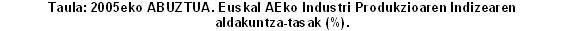 Sektoreka, industri sektore handien sailkapena kontuan hartuta, 2005eko abuztuko indizearen bilakaerak honako aldakuntzak izan zituen, 2004ko abuztuaren aldean: energia %2,8 hazi zen, ekipo-ondasunak %8,7, bitarteko ondasunak %4,1 eta kontsumo-ondasunak %3,9. Azken horiek honela banatu ziren: kontsumo-ondasun ez-iraunkorrak %7,0 hazi ziren, eta kontsumo-ondasun iraunkorrak %9,7 murriztu ziren.