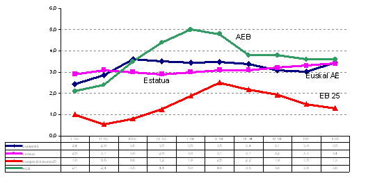 Orain arte eskaintza eta eskaerako agregatuak termino errealetan edo konstanteetan aurkezten ziren, oinarrizko urte bati dagokionez, eta urte horrekin alderatuta deflaktatzen ziren, prezioaren osagaia kenduz. Bolumen neurketa berriarekin, hazkundeak ez dira oinarrizko urte bati buruzkoak izango (esaterako, gure kasuan, 2000. urtea); erreferentziako urtea, aitzitik, aurreko urtea izango da, oinarri finkoko sistema batetik oinarri mugigarriko sistema batera igaroz. Aurreko urteko prezioen araberako neurketa hauek kate-mailak dira. Kate-maila horien produktutik, kateatutako bolumen-neurketen serie tenporala aterako dugu, indize-zenbaki gisa aurkeztuko direnak, erreferentziako urte baten aldean, 100 balioa izango duena.