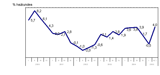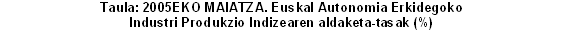 2005eko maiatzeko hil arteko aldaketa, 2005eko apirilaren aldean, positiboa izan zen Ekipamenduko Ondasunei (%2,4) eta Energiari (%0,4) dagokienez. Tarteko Ondasunek, ordea, ez zuten aldaketarik izan (%0,0). Alabaina, Kontsumo-ondasunen hil arteko tasak %3,0 egin zuen behera; horien artean, Kontsumo-ondasun iraunkorrek %-2,2 egin zuten behera eta Kontsumo-ondasun ez iraunkorrek %-3,4.