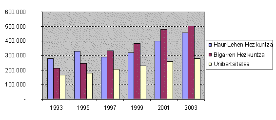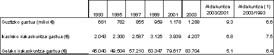 Gastuaren zatirik handiena, hots, %91,9 jarduera arruntak ordaintzeko erabili zen, eta gainerakoa, %8,1 inbertsioetarako. Gastu arrunta 1.185 milioi eurokoa izan zen eta honela banatu zen: %94 zuzenean irakaskuntzarako (horren barruan, kapitulurik garrantzitsuena langileria-gastuak hartu zuten, %89 hain zuzen); %0,8 jarduera osagarrietarako, eta %5,2 batez ere jantokiko eta eskola-garraioko zerbitzuko osagarrietarako.