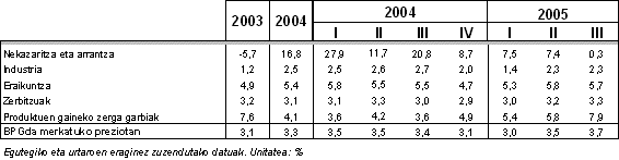 Industri sektorea, eraikuntzak (%5,7) eta zerbitzuek (%3,3) lortutako urte arteko tasetatik urrun gelditu zen artean, baina bere suspertzea bizkortzen ari dela erakutsi zuen, ondoz ondoko bigarren hiruhilekoan. Bigarren eta hirugarren hiruhilekoko urte arteko tasak %2,3koak izan ziren, baina hiruhilekoen arteko aurrerapenak bizkortzen jarraitu zuen: %1,8koa izan zen bigarren hiruhilekoan eta %2,4raino igo zen hirugarren hiruhilekoan, bigarrenaren aldean.