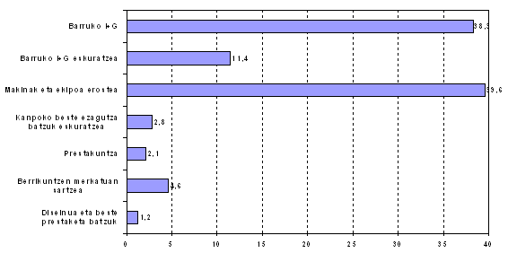 Jarduera-sektorearen arabera industria da nagusi establezimendu berritzaileen %22,3arekin; eta, zehatzago, sektore hauek: papera, edizioa eta arte grafikoak (%47,5) eta industria kimikoa (%43,3). Zerbitzuen sektorean establezimenduen %17,7 berritzaileak izan ziren, eta besteen gainetik gelditu ziren hezkuntza (%34,3) eta enpresei eskaintzen zaizkien zerbitzuak (%30,8). Azkenik, eraikuntzak %8,0ko ehunekoa lortu zuen.