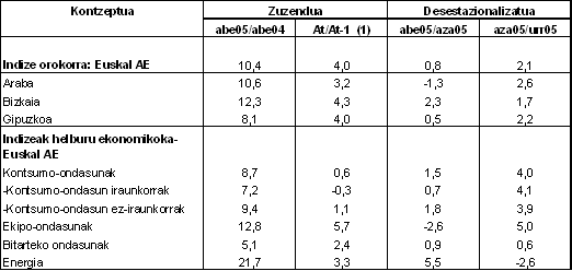 Industriako sektore handi guztiek, kontsumo-ondasun iraunkorrak izan ezik, aldakuntza positiboak izan zituzten urteko metatuan. Ekipamenduko ondasunak %5,7 hazi ziren, energia %3,3, tarteko ondasunak %2,4 eta kontsumo-ondasunak, orokorrean, %0,6. Azken hauen artean, kontsumo-ondasun ez iraunkorrak %1,1 hazi ziren baina kontsumo-ondasun iraunkorrak %0,3 gutxitu ziren. Hori guztia, betiere, 2004. urtearekin erkatuta.