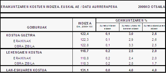 Azken hamabi hilabeteetan (2005eko otsailetik 2006ko otsailera) eraikuntzaren kostuak %3,0 igo dira.