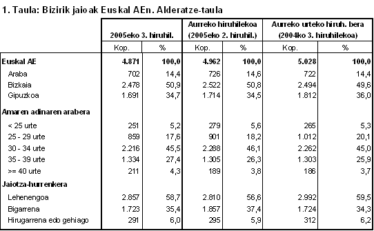 Jaiotzak amaren adinaren arabera banatzean 30-34 urtekoak dira oraindik nagusi, jaiotza guztien %45,5 adin-tarte horretako amen artean eman baitziren. Gero 35-39 urteko amen artean eman zen jaiotza gehien (%27,4), eta 25-29 urteko amen artean soilik izan ziren jaiotzen %17,6. Muturreko adin-tarteak aintzat hartuta, 25 urtetik beherako multzoan jaiotzen %5,2 izan ziren eta 40 urtetik gorakoen multzoan jaiotzen %4,3.