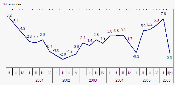 Urteko lehenengo lauhilekoko hazkundea %5,7koa izan da 2006ko lehenengo lau hilabeteetan