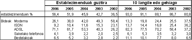 Ohar metodologikoa: EUSTATek 2006ko lehenengo hiruhilekoan (ondoz ondoko seigarren urtez) egin duen Informazioaren Gizarteari buruzko Inkesta (IGI, enpresak) jarduera-sektore guztietako EAEko enpresentzat da (lehenengo sektorekoak izan ezik); inkestaren helburua hauxe da: enpresa horiek informazioaren eta komunikazioaren teknologietan (IKT) zein ekipamendu duten, Internet nola erabiltzen duten eta merkataritza elektronikoak zenbaterainoko garrantzia duen jakitea. Inkestak, gainera, Euskal Autonomia Erkidegoko 7.500 establezimenduren erantzuna hartu du oinarri gisa.