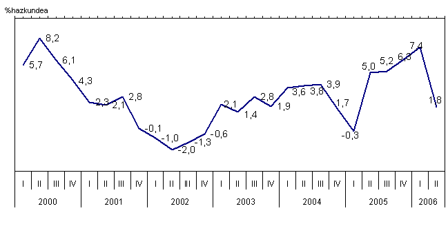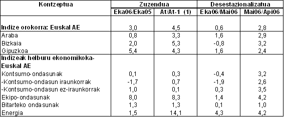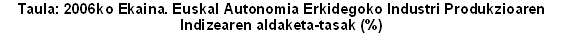 Sektoreen arabera, eta industri sektore nagusienen sailkapena kontuan hartuta, 2006ko ekaineko indizearen bilakaerak (2005eko ekainaren aldean) gehikuntzak izan ditu ia sektore guztietan: ekipamenduko ondasunak %8,0 gehitu dira, energia %1,5, tarteko ondasunak %1,3 eta kontsumo-ondasunak %0,1; izan ere, azken hauen gehikuntza kontsumo-ondasun ez iraunkorren (%1,0) gehikuntzaren ondorioz eman da. Aitzitik, kontsumo-ondasun iraunkorrak %1,7 gutxitu dira.