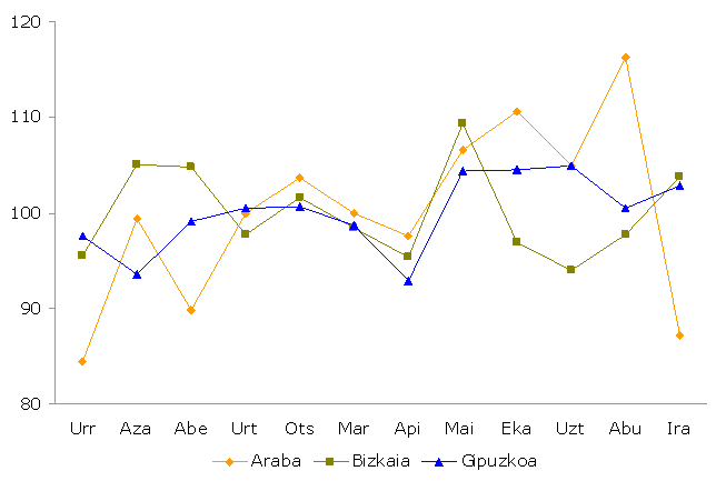 Eustaten datuen arabera, 2006ko hirugarren hiruhilekoan 5.023 ume jaio ziren Euskal Autonomia Erkidegoan, aurreko urteko hiruhileko berean baino %2,9 gehiago. Lurraldeka, Araban 731 ume jaio ziren (aurreko urteko aldi berean baino %4,1 gehiago) Gipuzkoan 1.782 ume jaio ziren (%4,8 gehiago) eta Bizkaian gehikuntzarik txikiena eman zen, 2.510 jaiotza (%1,2 gehiago).