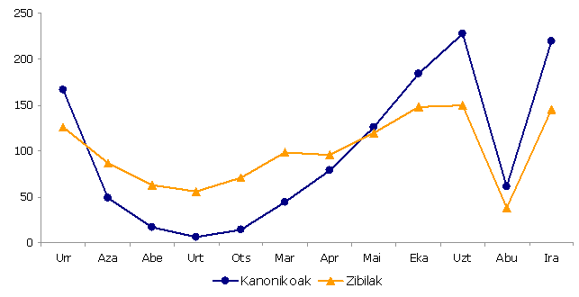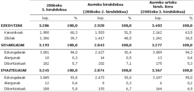 EUSTATen datuen arabera, 2006ko uztailean, abuztuan eta irailean guztira 3.286 ezkontza egin ziren Euskal Autonomia Erkidegoan, hau da, aurreko urteko hiruhileko beraren aldean kopuru hori %3,4 gutxitu da. Bizkaian 1.675 ezkontza egin ziren, aurreko urteko aldi berean baino %5,2 gutxiago, eta Araban 421 ezkontza, aurrekoan baino %4,1 gutxiago; soilik Gipuzkoan gehitu zen ezkontzen kopurua, 1.085 egin zirelako, hau da, aurreko urteko aldi berean baino %2,7 gehiago. Euskal Autonomia Erkidegokoak ez diren egoiliarren artean 105 ezkontza egin ziren.