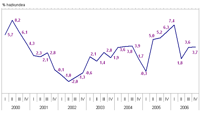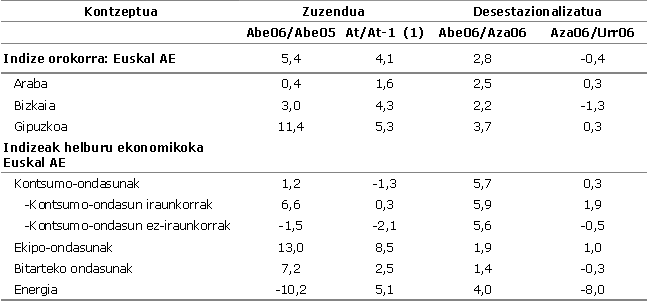 Industri sektore handiek hainbat eratako aldakuntzak izan dituzte urteko metatuan. Ekipo-ondasunak %8,5 igo dira, energia %5,1 eta bitarteko ondasunak %2,5. Kontsumo-ondasunak, oro har, %1,3 jaitsi dira. Horien baitan, kontsumo-ondasun iraunkorrak %0,3 hazi dira, eta kontsumo-ondasun ez-iraunkorrak, berriz, %2,1 jaitsi dira.