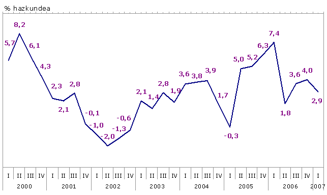 (*) 2007ko urtarrileko urte arteko hazkunde zuzendua
