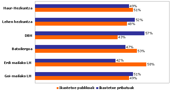 Ikasleen %56 zentro publikoetan egon zen, hau da, %1,8 gehiago