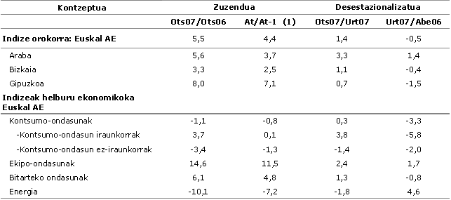 Sektoreen arabera, eta industri sektore nagusiak sailkatu ostean, 2007ko otsaileko indizearen bilakaera hazi egin da ekipamenduen ondasunetan (%14,6) eta tarteko ondasunetan (%6,1), 2006ko otsailaren aldean. Aitzitik, energia %10,1 gutxitu da eta kontsumo-ondasunak %1,1, hauek kontsumo-ondasun ez iraunkorren (%-3,4) gutxitzearen ondorioz; kontsumo-ondasun iraunkorrak, aldiz, %3,7 gehitu dira.