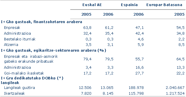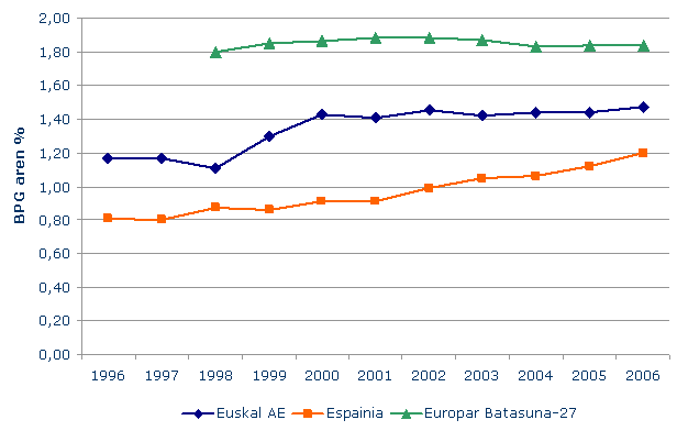 Egiaztatu da erlazio positiboa dagoela biztanleko BPGren eta I+Gra bideratutako BPGren ehunekoen artean. Herrialde aberatsenek egiten dute I+Gko inbertsiorik handiena, hau da, euren BPGren %2,5 gainditzen dutenak: Suedia, Finlandia, Japonia, Suitza, Islandia, AEB eta Alemania. Bitarteko ahalegina, hots, BPGren %1,5en eta %2,5en artekoa egiten dutenen artean, Austria, Danimarka, Frantzia, Belgika, Erresuma Batua, Herbehereak, Eslovenia, Luxenburgo, Txekiar Errepublika eta Norvegia daude. Inbertsio baxuenak, azkenik, Estonian (%1,41), Irlandan (%1,32), Espainian (%1,20), Italian (%1,10), Hungarian (%1,00), Kroazian (%0,87), Portugalen (%0,81), Grezian (%0,63) eta Polonian (%0,57) gertatzen dira.