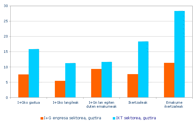 IKT sektorearen indarra berrikuntzan eta I+Gn nabarmendu egiten da, sektore guztien batez bestekoaren gainetik