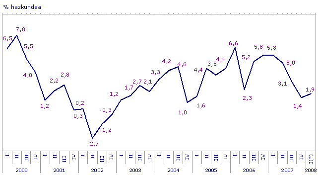 Sektoreen arabera, eta industri sektore nagusiak sailkatu ostean, 2008ko urtarrileko indizearen bilakaera hazi egin da ekipamendu ondasunetan (%2,4), tarteko ondasunetan (%3,3), eta energian (%0,3), 2007ko urtarrilaren aldean. Kontsumo-ondasunak %-4,0 jaitsi dira; kontsumo-ondasun ez-iraunkorren prezioak %-0,8 jaitsi ziren, eta kontsumo-ondasun iraunkorrenak %-11,3.