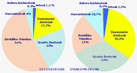 Mutilen erdiak aukera zientifiko-teknikoetara jo zuten; neskek gizarte zientzietara eta osasun arlora.