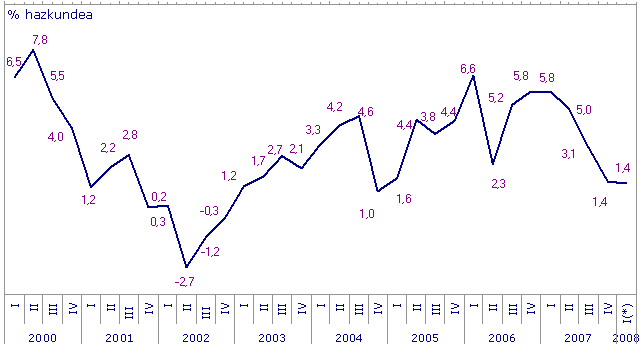 (*) 2008ko urtarril-otsaileko urte arteko hazkunde zuzendua