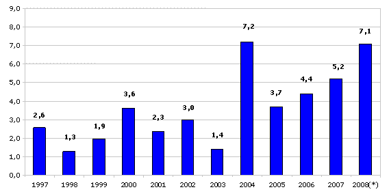 Sektorean kontsumitu diren lehengaien prezioari dagokionez, azken hamabi hilabeteetan inflazio-tasa handienak izan dituztenak ondokoak izan dira: Ez-metalezko meak (%16,4), Energia elektrikoa eta gasa (%12,1), Ura (%11,4) eta Petrolioa fintzea (%9,0). Bestalde, urteko arteko prezioetan (2008ko apirila, 2007ko apirilaren aldean), igoera txikiagoak izan zituzten Metalurgia (%0,3), Makineria (%2,0) eta Zuraren industriako (%2,1) lehengaiek.