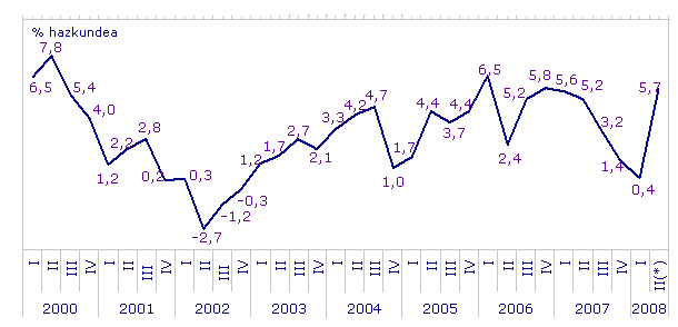 (*) 2008ko apirileko urte arteko hazkunde zuzendua