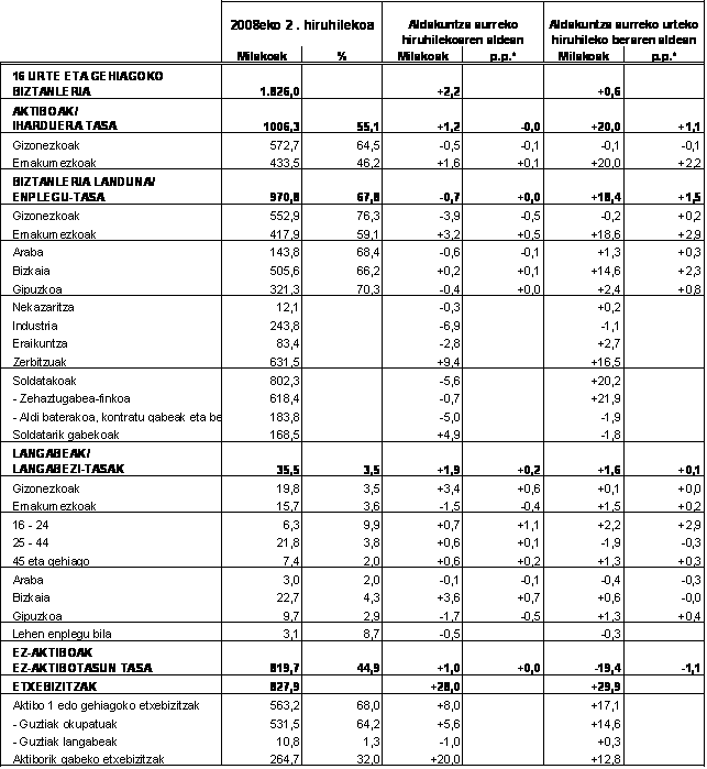Euskal AEko langabezia-tasa, 2008ko bigarren hiruhilekoan, euroaren eremuko herrialdeetakoa baino %3,7 txikiagoa izan da. EUROSTATen arabera (Europar Batasuneko Estatistika Bulegoa), 2008ko maiatzean, eremu hartan, langabezia-tasa %7,2 izan da. Halaber, Europar Batasuneko tasa %6,8 izan da, 2008. urtean Batasuna osatzen duten 27 herrialdeak kontuan izanik.