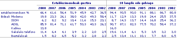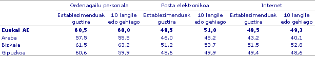 Zifra horiek altuagoak dira 10 enplegatu edo gehiagoko enpresetan, izan ere, %24,0k sarearen bitartez edo beste sistema elektroniko batzuen bidez (EDI, datu elektronikoen trukaketa) erosketak edo salmentak egin dute, 3,6 puntu hazi ondoren. Segmentu honetan ere, kopuru guztiaren zatirik handiena etorri da erosketa elektronikoak egin dituztenen esku, %21,4, 3,7 puntu igo dira aurreko urtearen aldean; eta, neurri txikiagoan bada ere, bide berberetatik salmentak egin dituztenen esku, %7,8, 1,4 puntu hazi ondoren.